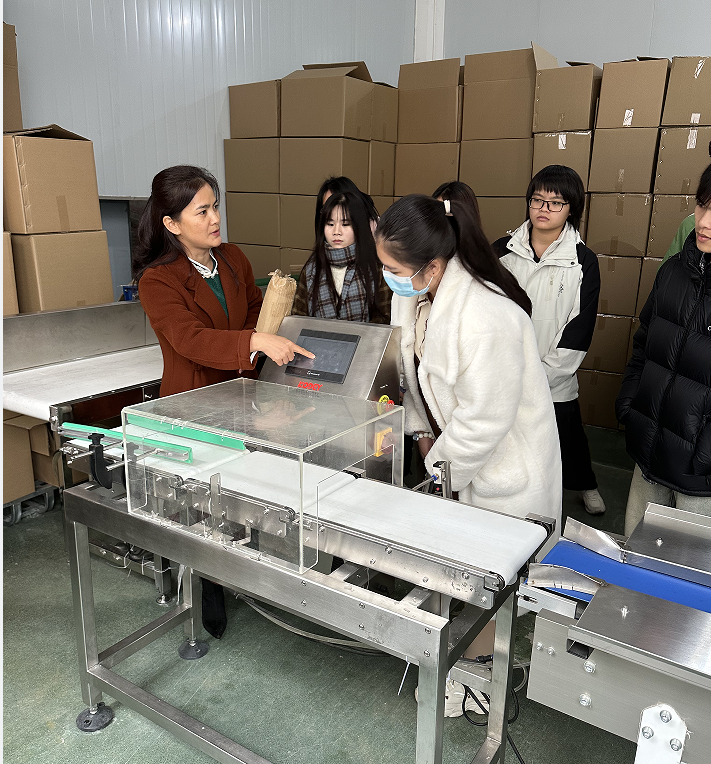活动共分为五个环节,分别是:介绍公司和产品、参观制作流程、直播知识讲解、品尝产品和布置实践作业。首先,赵百科公司创始人、总经理赵百科向团队成员介绍了赵百科公司的发展现状和发展愿景,以及赵百科公司的产品;然后,在赵百科公司副总经理何秋霖的带领下,参观赵百科公司的河粉生产车间,对河粉工业化和自动化的生产环节有了清晰的认识;接着,电商部主管李英健向师生传授河粉直播运营相关经验和知识,为后续直播实践的开展进行了铺垫;最后,团队成员亲自品尝赵百科河粉,对赵百科河粉产品有了更直观深切的认识感受。何副经理给团队人员安排拍摄短视频以及撰写产品直播脚本的寒假作业,后续将结合公司的商业标准给各位同学的作业进行点评和指导。